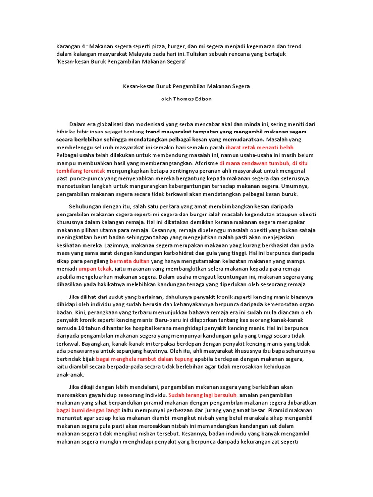 Karangan 4 Kesan Buruk Pengambilan Makanan Segera Pdf